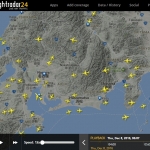 静岡上空は、普通に旅客機がたくさん飛んでいるので、気象条件が揃うと、今日のような飛行機雲が目撃されます。参考図は、今日の15:07頃の静岡県周辺の旅客機の運行状況です。